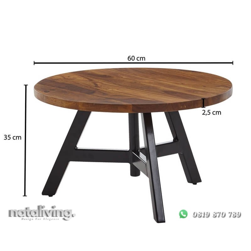 Produk meja kopi dari bahan kayu jati ini merupakan salah satu varian terbaru yang kami rekomendasikan kepada anda. Karena desainnya sangat keren dengan mengusung konsep minimalis modern yang top meja berbentuk bulat berdiameter 60cm. Dan ditopang dengan kaki dari bahan besi hollow warna hitam. Sehingga menjadikan meja ini semakin kekinian dan akan sangat tepat untuk menemani sofa pada ruang tamu.