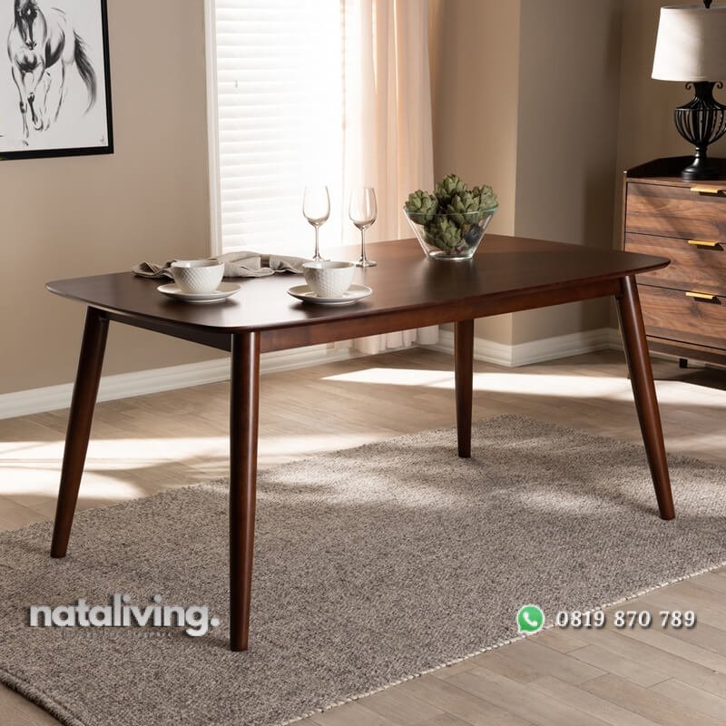 Furniture satu ini akan sangat tepat sekali untuk menjadi pelengkap kursi makan pada dapur anda. Karena desain dari produk satu ini dengan konsep minimalis model terbaru. Serta visualnya dimaximalkan dengan sentuhan wood finishing warna walnut brown semi gloss yang sangat cantik dan rapi. Dan pastinya meja makan satu ini diolah dengan kayu jati pilihan sehingga akan awet dan tahan lama.