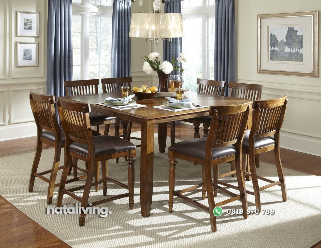 Meja makan kotak persegi 8 kursi ini bisa jadi pilihan ideal buat makan bareng keluarga. Anda tidak perlu khawatir kehabisan tempat, karena set meja makan ini dibuat simpel.