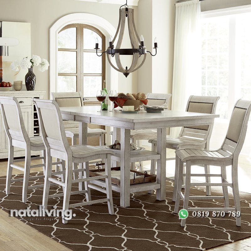 Meja makan minimalis 6 kursi ini memiliki tampilan yang stylish, fresh dan modern. Tersedia berbagai tampilan warna yang cantik. Bentuk meja dibuat multifungsi, terdapat rak tambahan dibawah dan kursi memiliki sandaran sedikit melengkung dengan tambahan busa yang empuk.
