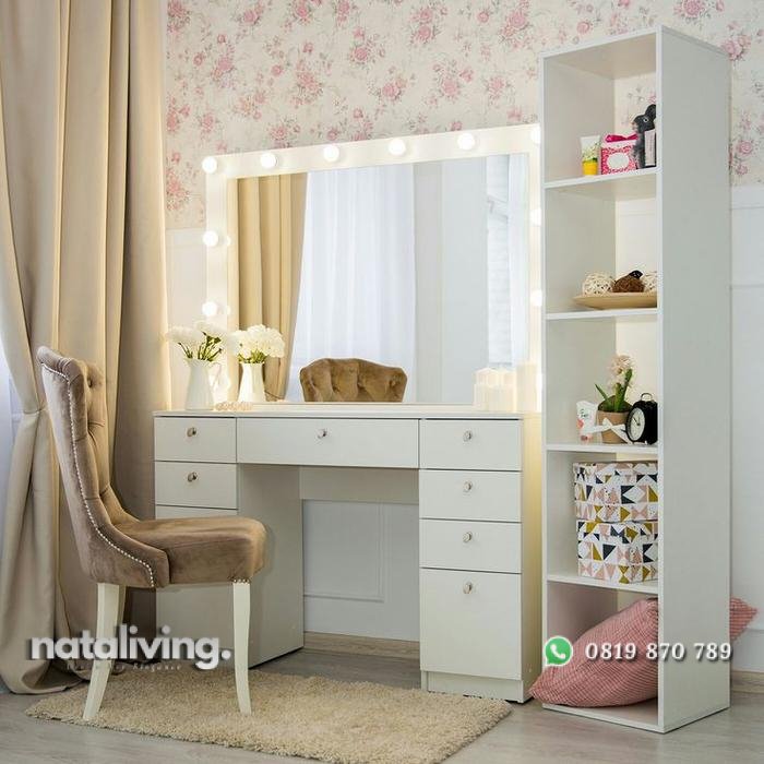 Meja rias mewah duco putih meja rias kombinasi lampu nataliving furniture 1