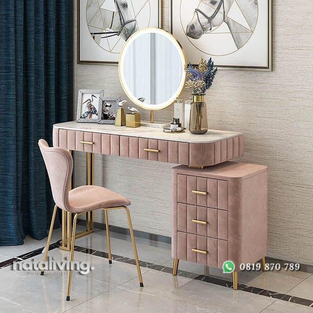 Meja rias rangka besi full jok top marmer terbaru tata rias artis nataliving furniture 1