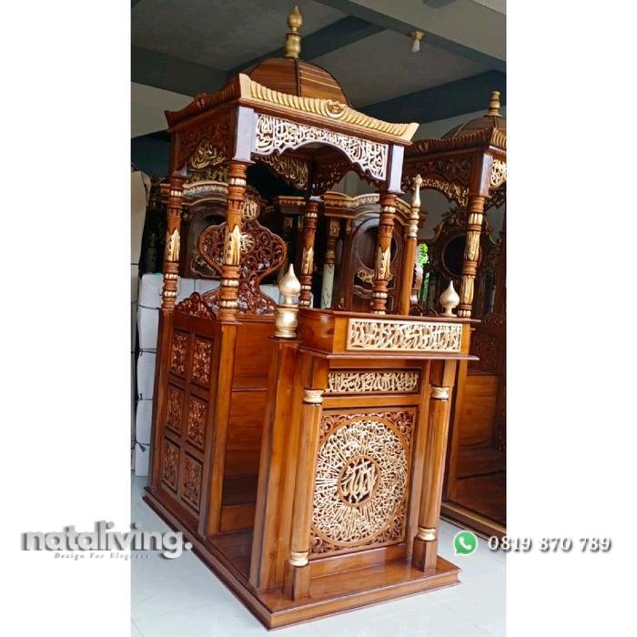 Mimbar masjid tiang depan kayu jati mimbar kubah masjid agung kaligrafi terlaris - DP nataliving furniture 1