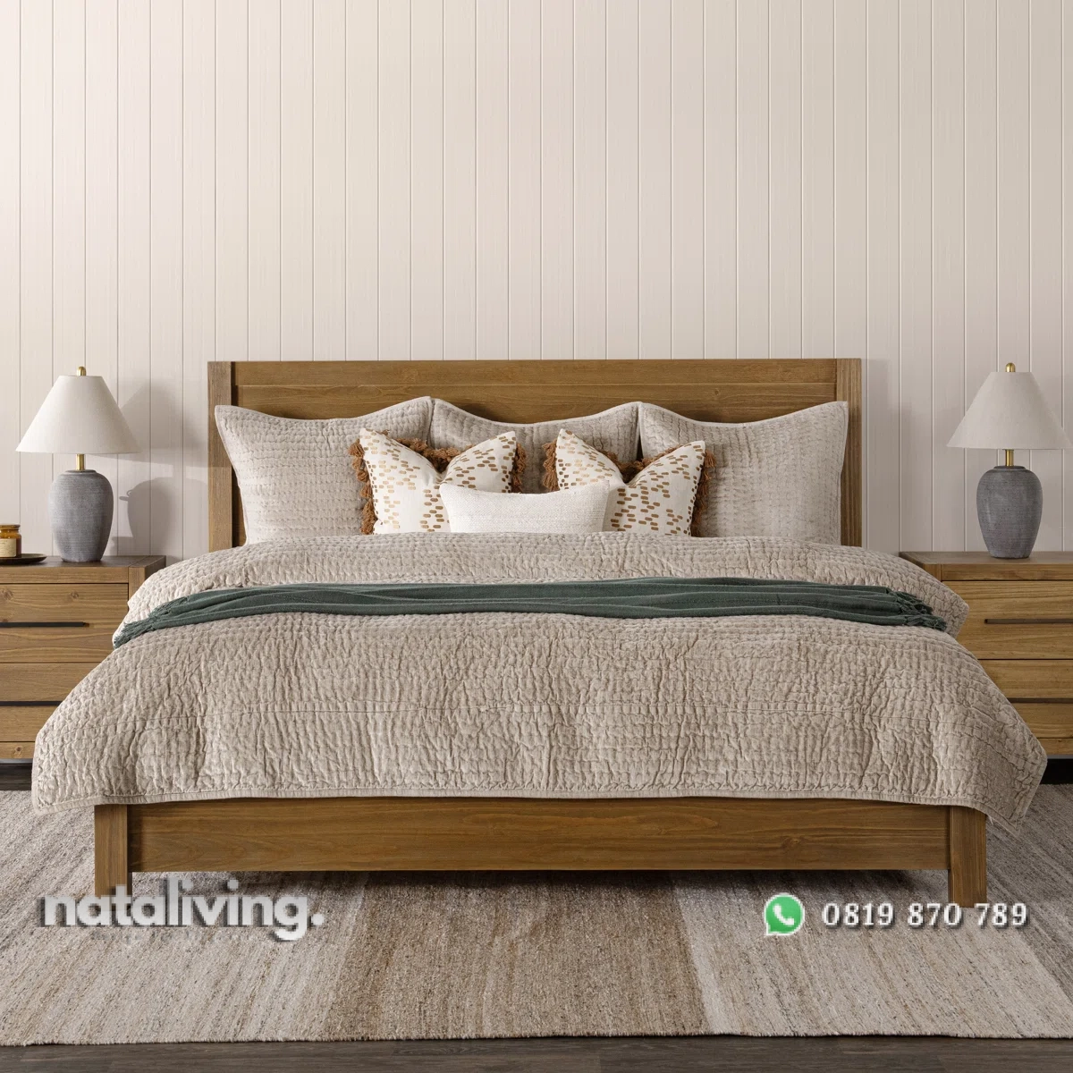 Modicca Tempat Tidur Kayu Jati Solid Minimalis Natural nataliving furniture