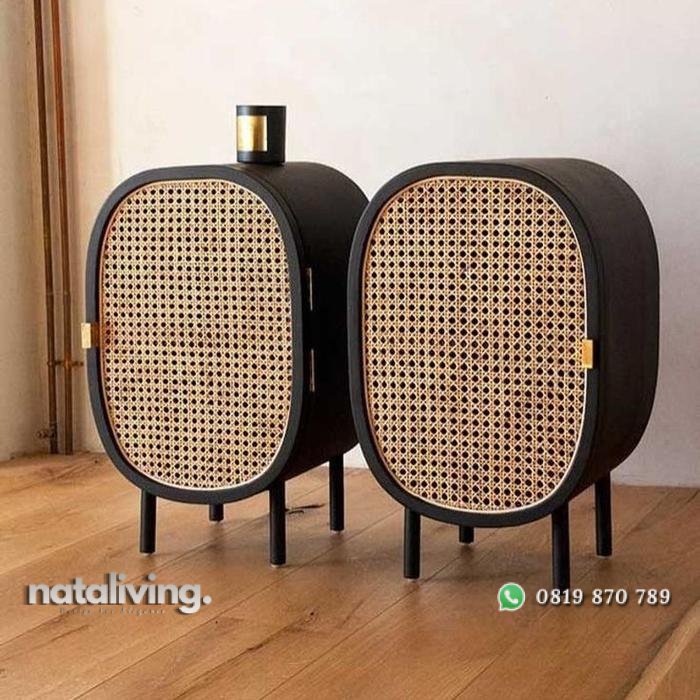 Nakas kayu jati kombinasi rotan alami nakas terbaru nataliving furniture