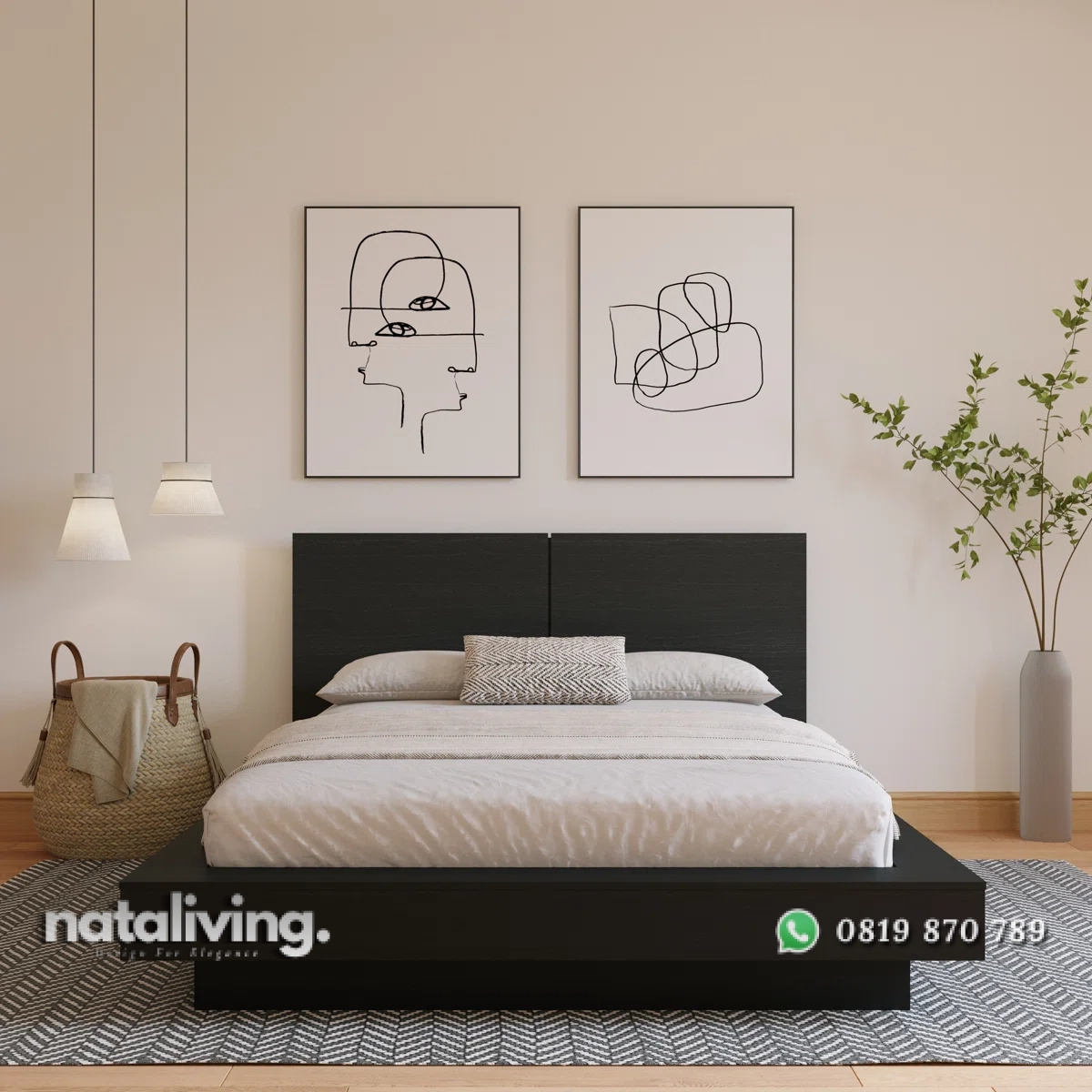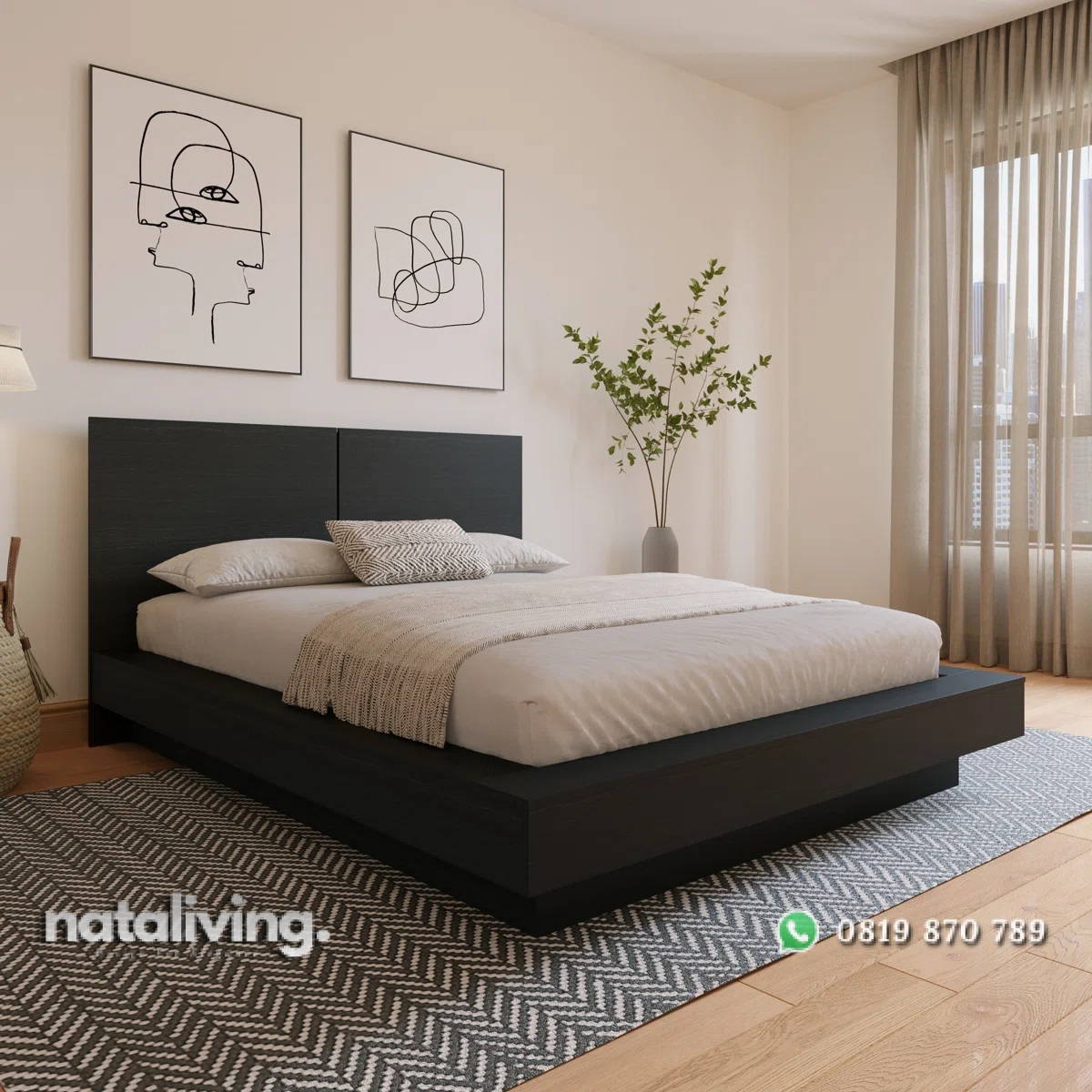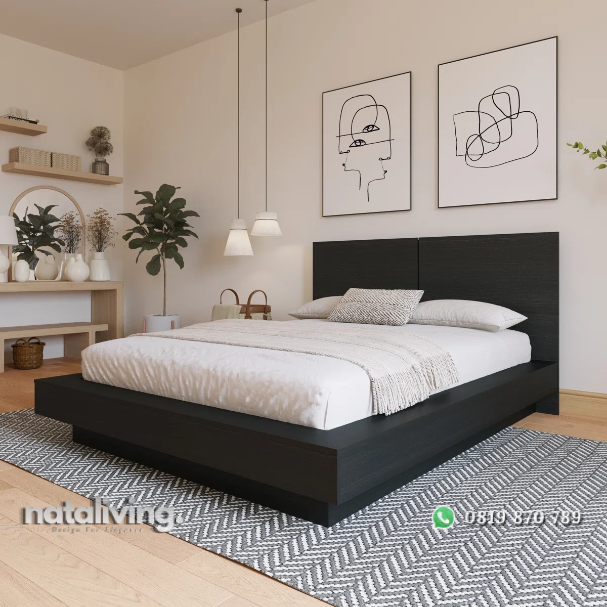 - Tempat Tidur : P 180 cm x L 200 cm x T 110 cm