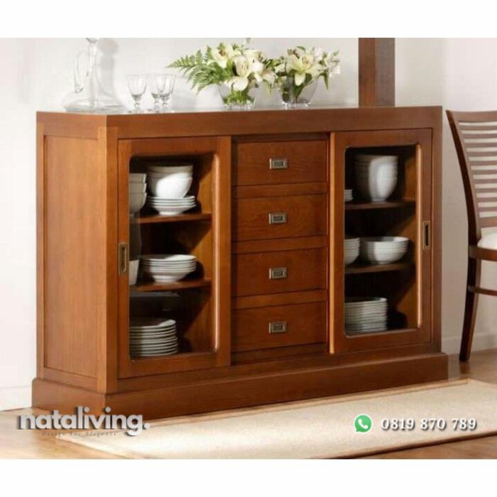 Rak piring modern kayu jati pintu sleding bufet piring terbaru nataliving furniture