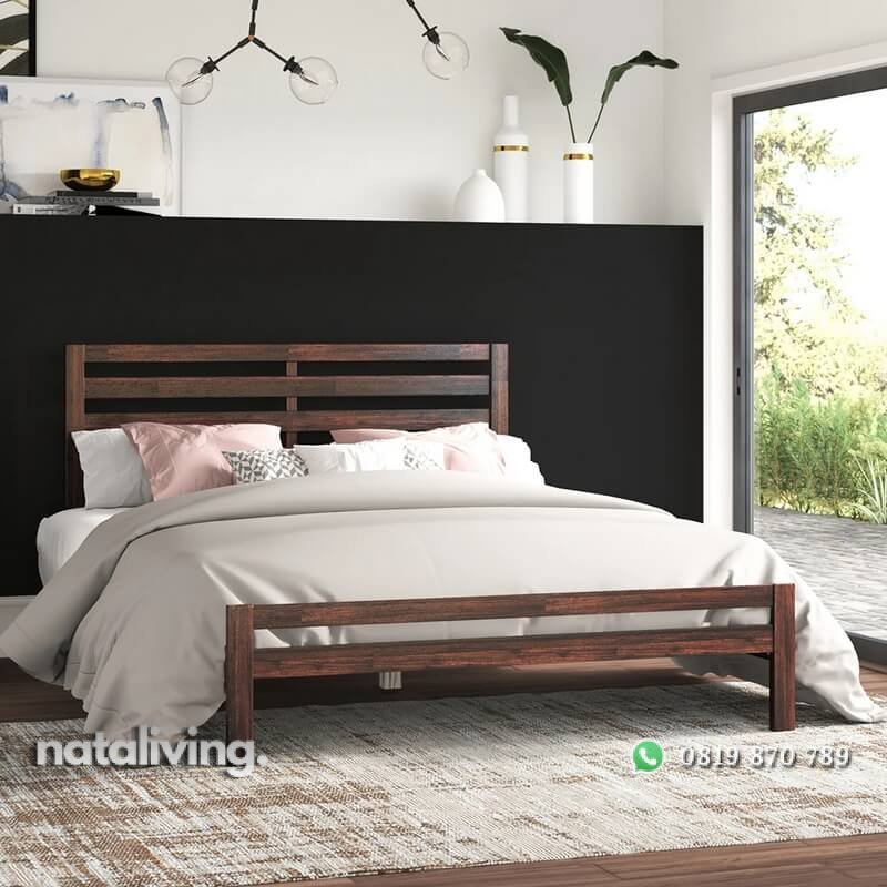 Sangat cocok untuk menjadi pilihan bagi anda yang sedang mencari produk tempat tidur untuk pelengkap kamar. Karena desain dari ranjang jati ini sangat keren dengan mengusung tema minimalis gaya terbaru yang sangat modis dan kekinian. Serta memiliki visual yang menawan berkat lapisan wood finishing melamine warna salnut brown semi gloss. Dan pastinya, ranjang ini diolah menggunakan kayu jati pilihan sehingga terjamin akan mutu dan kualitasnnya.