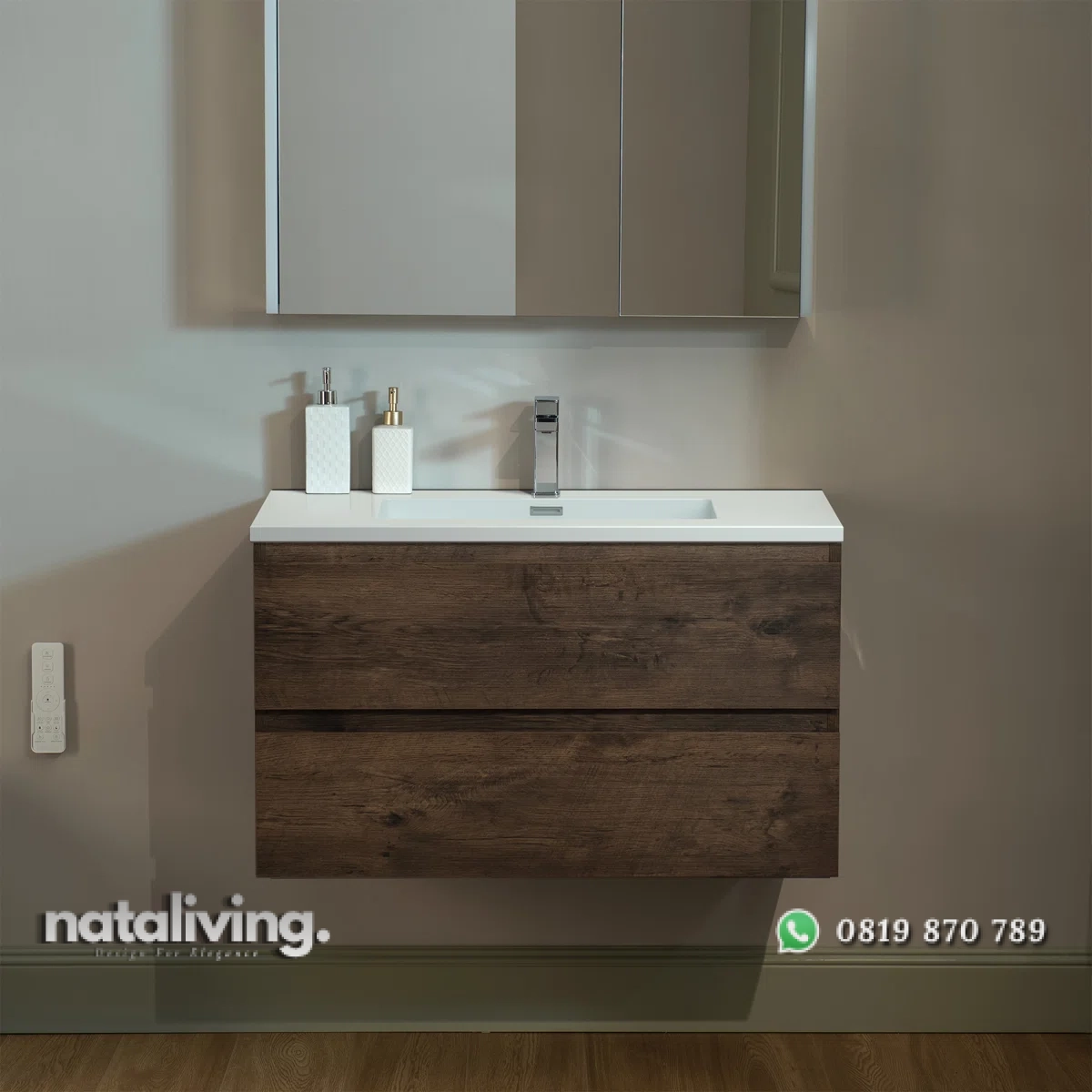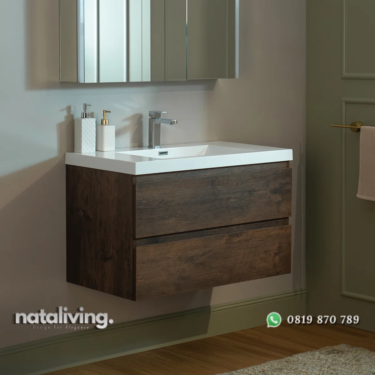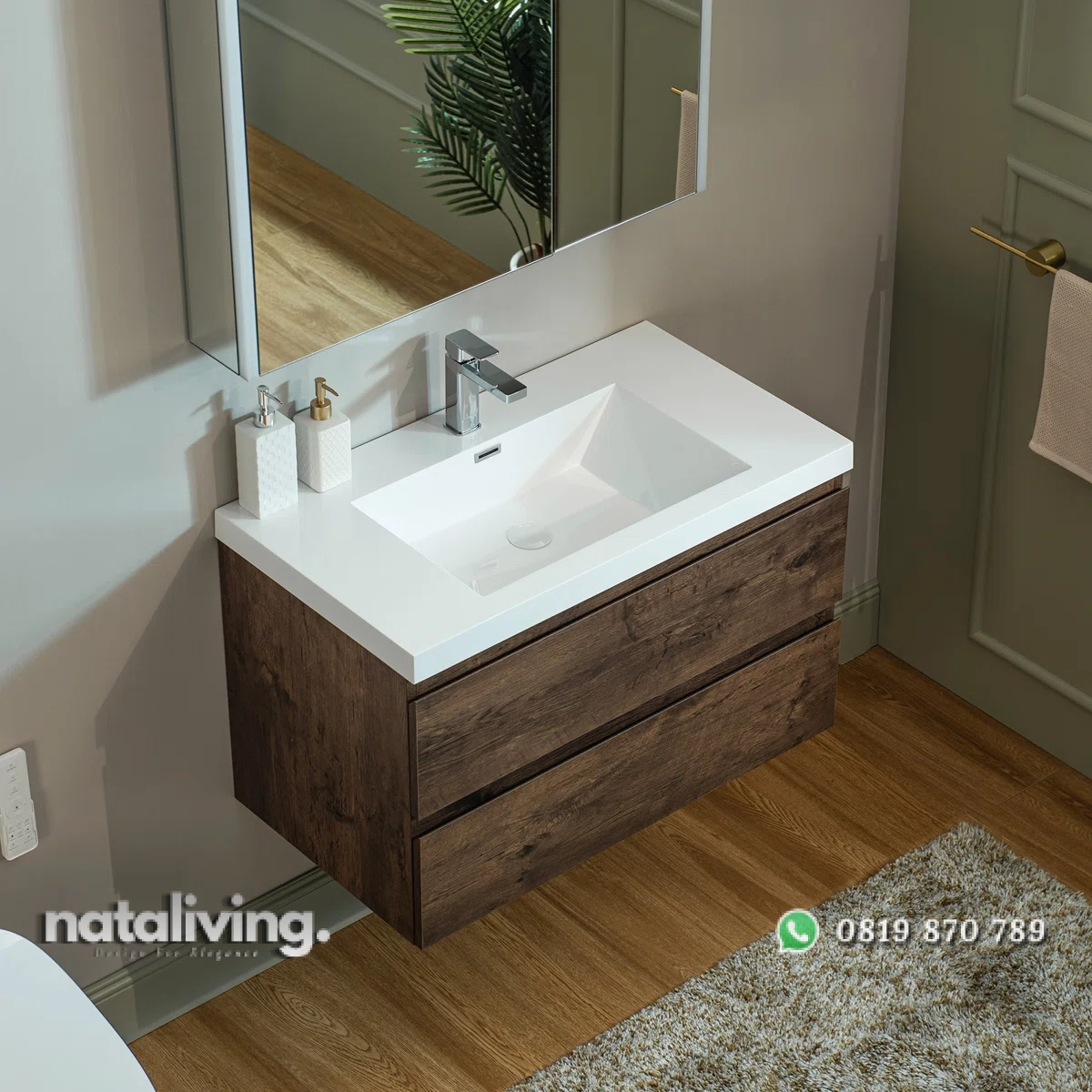 Hadirkan pesona kemewahan dalam ruang kamar mandi dan salah satu tempat cuci tangan ataupun membasuh muka Anda yaitu dengan produk ini sangat cocok untuk menjadi salah satu pilihan bagi Anda. Karena desain dari produk Wastafel Cabinet ini sangat elegant dengan mengusung tema minimalis bergaya modern yang sangat modis dan kekinian. Serta memiliki visual yang menawan berkat lapisan warna cat finishing melamine yang menyesuaikan produk ini sehingga menambah kesan mewah juga elegant. Dan pastinya, bahan baku utama dari produk Wastafel ini diolah dengan menggunakan Kayu Jati Perhutani sehingga terjamin akan mutu, awet dan kualitasnnya.