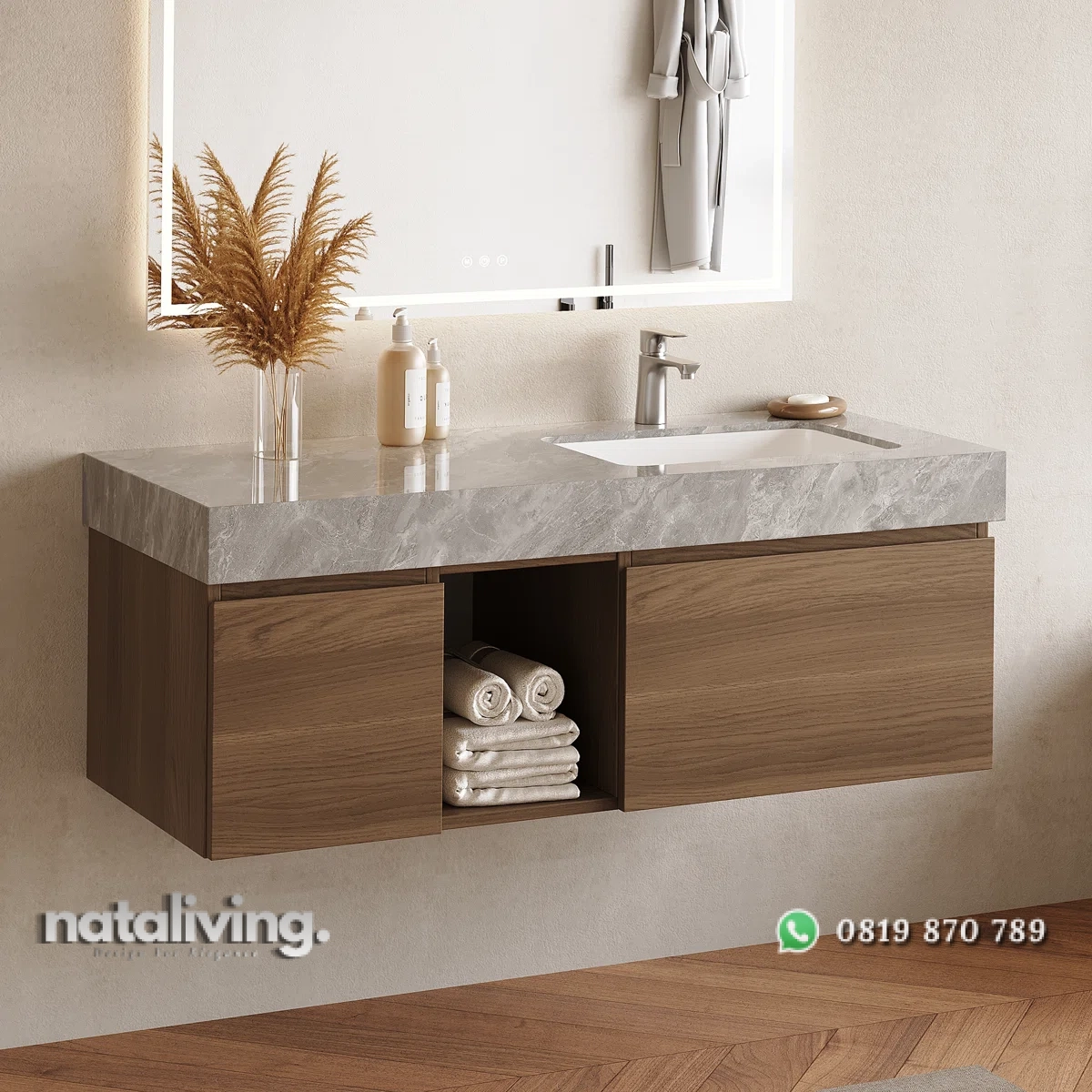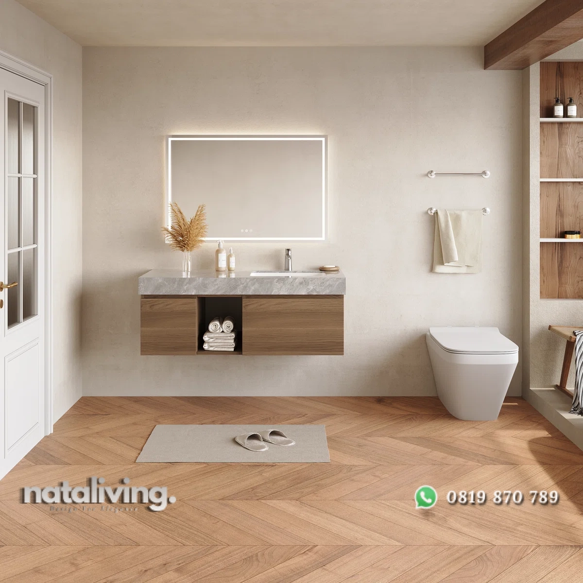 Hadirkan pesona kemewahan dalam ruang kamar mandi dan salah satu tempat cuci tangan ataupun membasuh muka Anda yaitu dengan produk ini sangat cocok untuk menjadi salah satu pilihan bagi Anda. Karena desain dari produk Wastafel Cabinet ini sangat elegant dengan mengusung tema minimalis bergaya modern yang sangat modis dan kekinian. Serta memiliki visual yang menawan berkat lapisan warna tacosheet premium yang sangat elegant. Dan pastinya, bahan baku utama dari produk Wastafel ini diolah dengan menggunakan plywood premium sehingga terjamin akan mutu, awet dan kualitasnnya.
