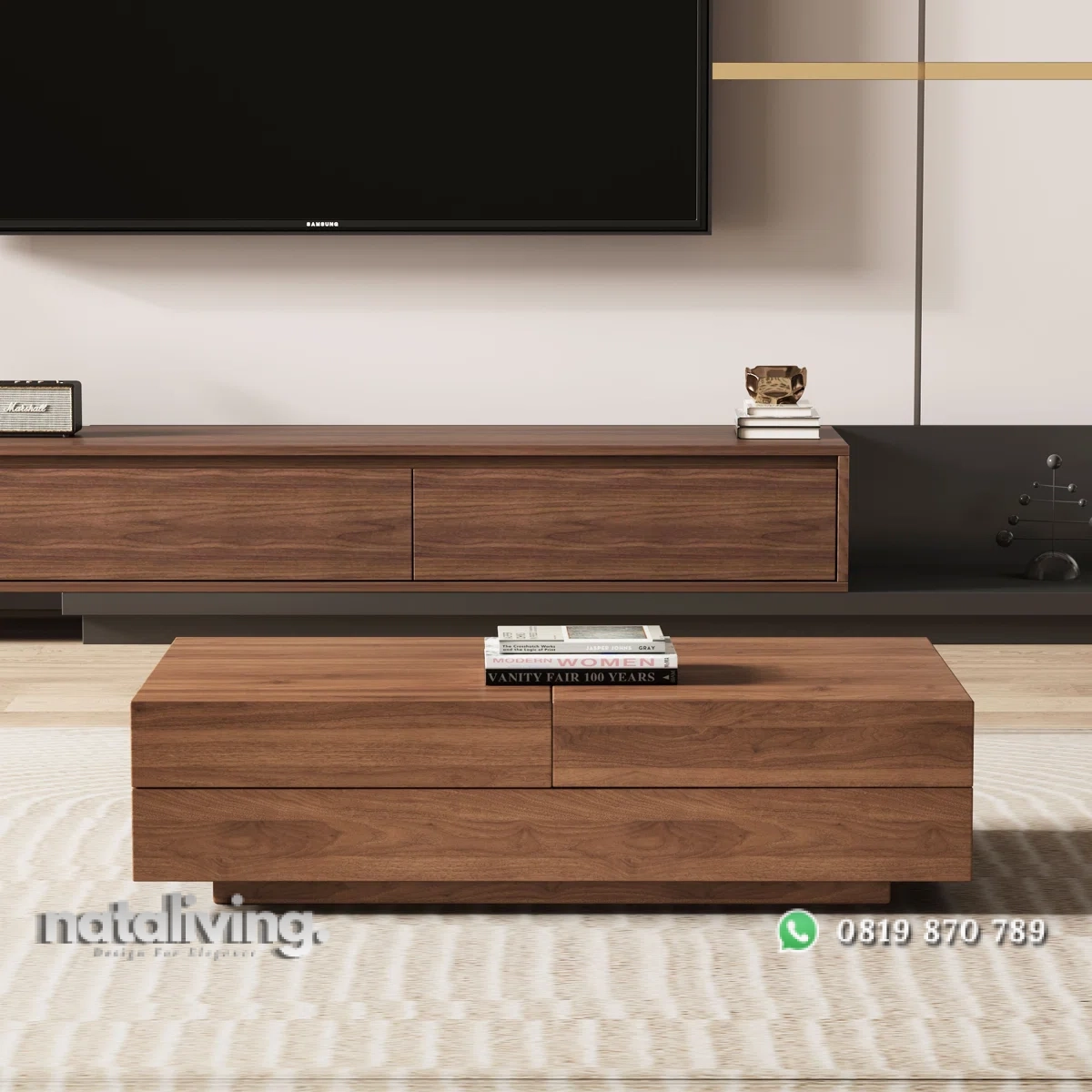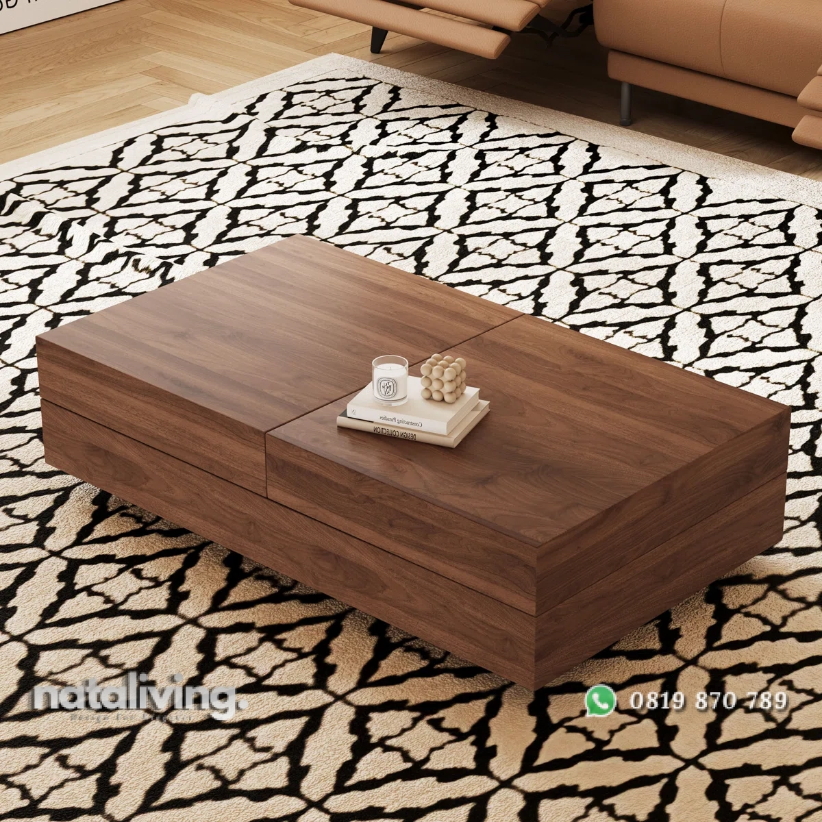 ini akan merubah ruang tamu Anda dengan sentuhan stylish namun praktis. Lihatlah meja tamu ini yang tidak hanya terlihat menawan tetapi juga dilengkapi dengan penyimpanan multifungsi yang praktis, sempurna untuk menyimpan majalah, remote, dan barang-barang penting lainnya. Finishingnya juga memberikan nuansa hangat, memperindah desain modern nya, dan membuat ruang Anda terasa lebih ramah. Meja tamu ini akan menjadi pusat perhatian yang menawan di ruang tamu Anda.