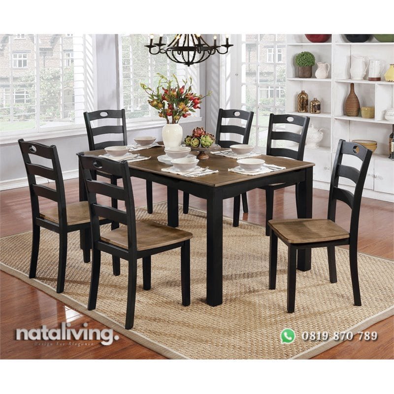 Set meja makan ini memiliki desain minimalis modern dengan kesan indah. Didukung dengan lapisan finishing yang bagus, warna dipadukan tampil lebih segar.