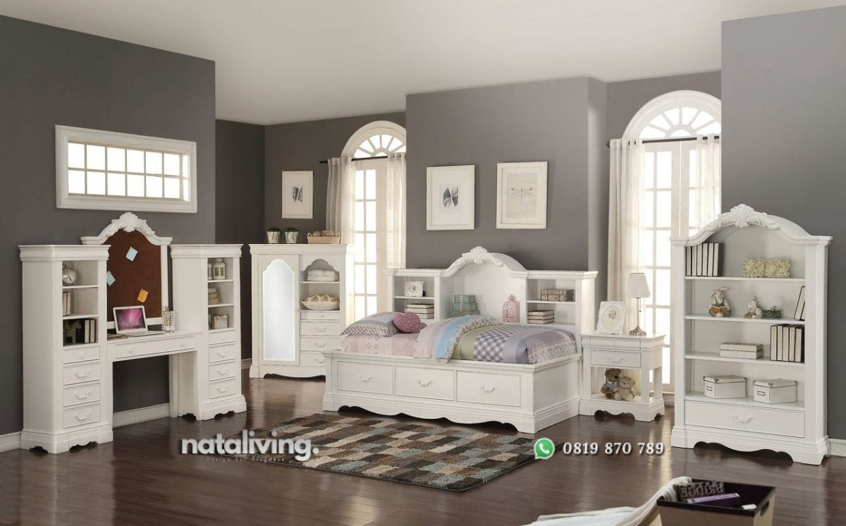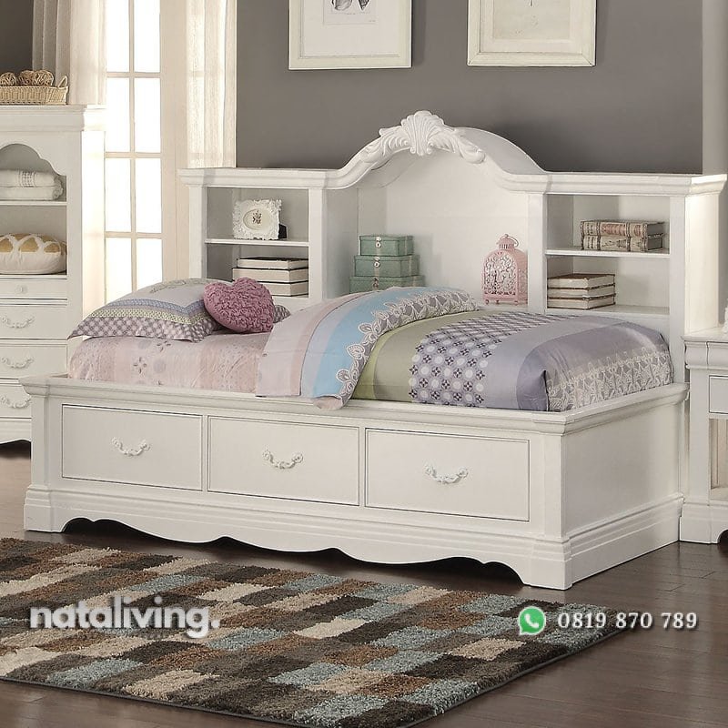 Satu set tempat tidur daybed dengan tampilan yang elegan, warna putih cerah terkesan bersih, didesain gaya minimaslis yang trendy.