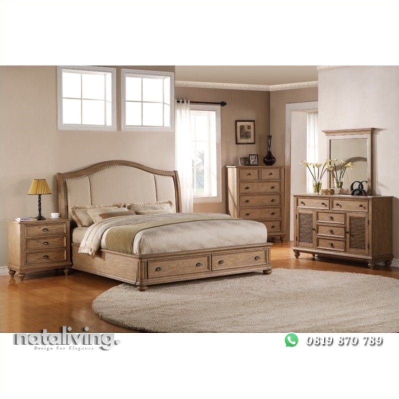 Produk set tempat tidur jati dengan desain minimalis elegant dan warna coklat natural yang akan menambah kesan alamai ruangan kamar tidur Anda.