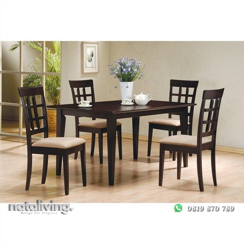 Set meja makan tampil simpel dan unik, terbuat dari kayu jati dengan konstruksi yang teruji. Paket produk tersedia 1 meja dan 4 kursi, dapat juga dipesan per unit/item.