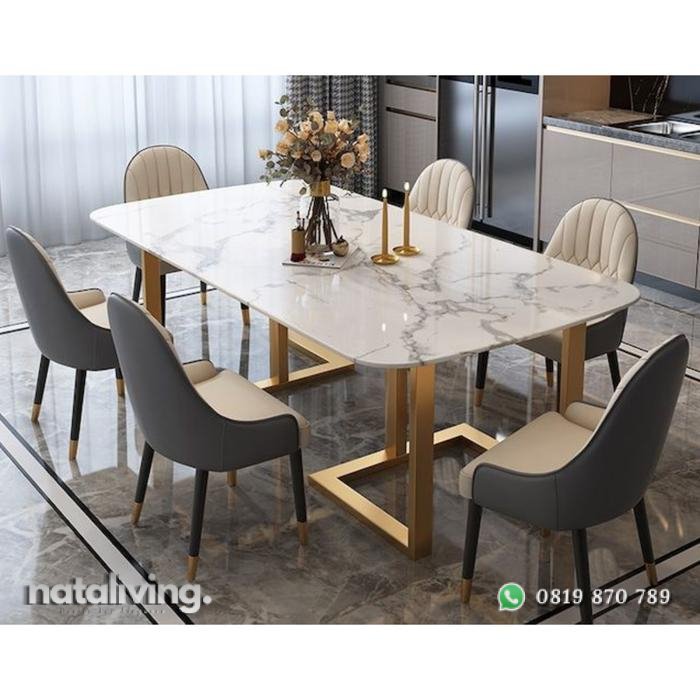 Keterangan produk di atas : SPESIFIKASI PRODUK Set 6 kursi 1 meja – Ukuran : Meja 160cm X 80cm X 75cm – Material : Besi hollow, marmer – Finishing : finising gold, silver, putih, hitam atau sesuai yang anda inginkan – Packing : Menggunakan 2 lapis kertas single fish dan kardus tebal Barang di buat menggunakan material yang berkualitas dan juga dikerjakan oleh tangan tangan ahli yang sudah berpegalaman dalam pembuatan mebel dan pewarnaan finishing, maka dari itu kami jamin produk produk yang kami jual, hanya produk produk mebel yang berkualitas Pengiriman : – NOTA BARANG / Invoice saya kirim pake JNE/J amp;T/Tiki/Pos – untuk BARANG akan kami kirim menggunakan Jasa Ekspedisi Truk maupun pick up dari Jepara yang sudah sangat terpercaya dan bekerjasama dengan kami Catatan : Harga yang tercantum belum termasuk ongkir ekpedisi ,info ongkir ekpedisi bisa chat pelapak terlebih dahulu Selamat berbelanja di furniture kami #kursitamu #kursitamusudut #kursiminimalis #kursikayujati #mejamakan #kurs