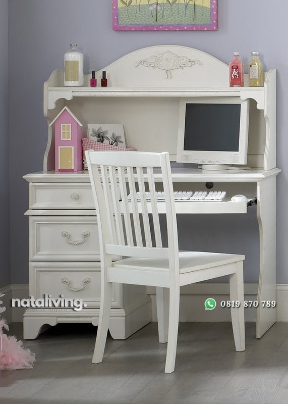 Salah satu produk meja belajar set dengan model 1/2 biro laci dan memiliki tema desain minimalis modern. Produk ini sudah kami lengkapi dengan 1 unit kursi belajar.