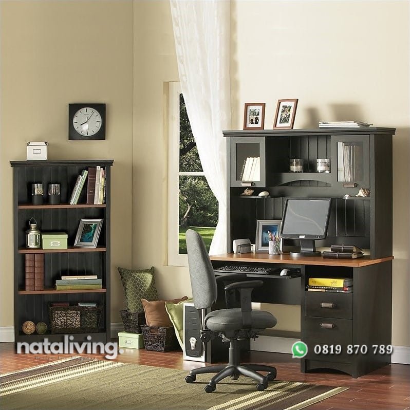 Set meja kerja dirumah ini Anda tidak perlu menyiapkan ruangan dengan area yang luas, ruangan kecil pun bisa untuk menempatkan set ini, karena desain dari set ini konsep minimalis yang dibuat simpel yang lebih praktis, area penyimpanan tetap sesuai dengan kebutuhan.