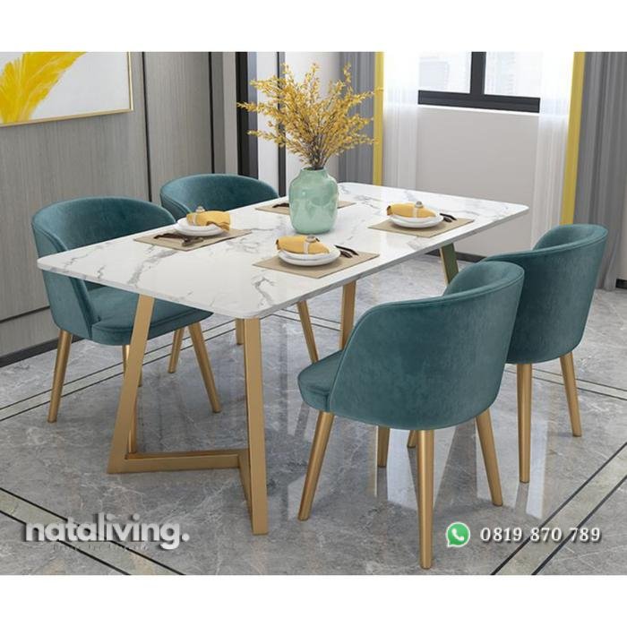 Keterangan produk di atas : SPESIFIKASI PRODUK Set 4 kursi 1 meja – Ukuran : Meja 160cm X 80cm X 75cm – Material : Besi pipa, marmer – Finishing : finising gold, silver, putih, hitam atau sesuai yang anda inginkan – Packing : Menggunakan 2 lapis kertas single fish dan kardus tebal Barang di buat menggunakan material yang berkualitas dan juga dikerjakan oleh tangan tangan ahli yang sudah berpegalaman dalam pembuatan mebel dan pewarnaan finishing, maka dari itu kami jamin produk produk yang kami jual, hanya produk produk mebel yang berkualitas Pengiriman : – NOTA BARANG / Invoice saya kirim pake JNE/J amp;T/Tiki/Pos – untuk BARANG akan kami kirim menggunakan Jasa Ekspedisi Truk maupun pick up dari Jepara yang sudah sangat terpercaya dan bekerjasama dengan kami Catatan : Harga yang tercantum belum termasuk ongkir ekpedisi ,info ongkir ekpedisi bisa chat pelapak terlebih dahulu Selamat berbelanja di furniture kami #kursitamu #kursitamusudut #kursiminimalis #kursikayujati #mejamakan #kursik