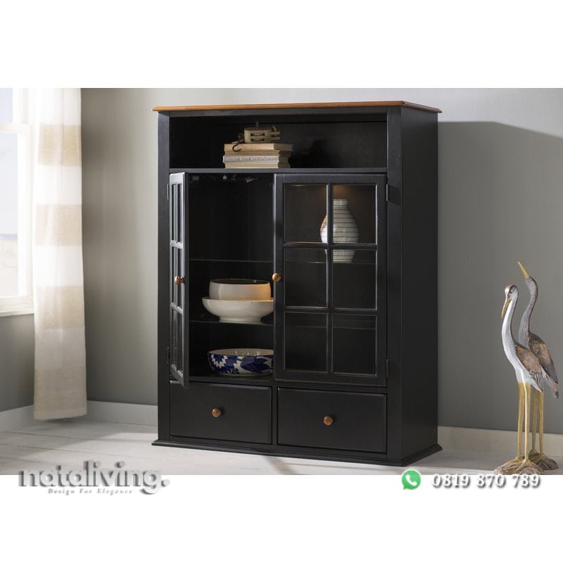 Set meja makan ini terdiri dari 1 meja makan dan 2 kursi, produk ini juga terdapat tambahan lemari dapur. Semua produk ini memiliki tampilan warna hitam dan memiliki desain minimalis modern.