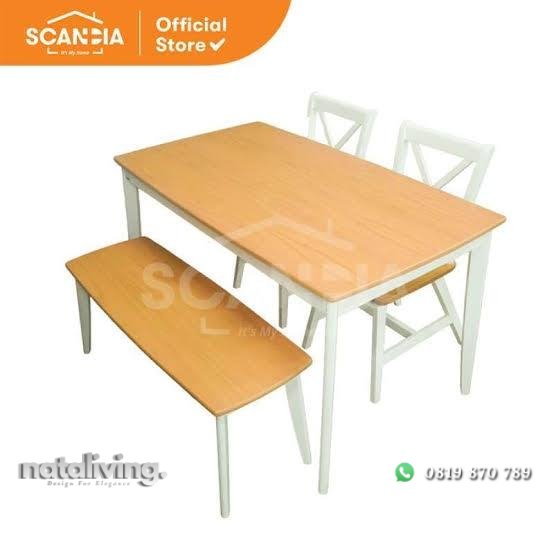 Set meja makan duco kombinasi natural jati kursi makan dengan bangku nataliving furniture 1