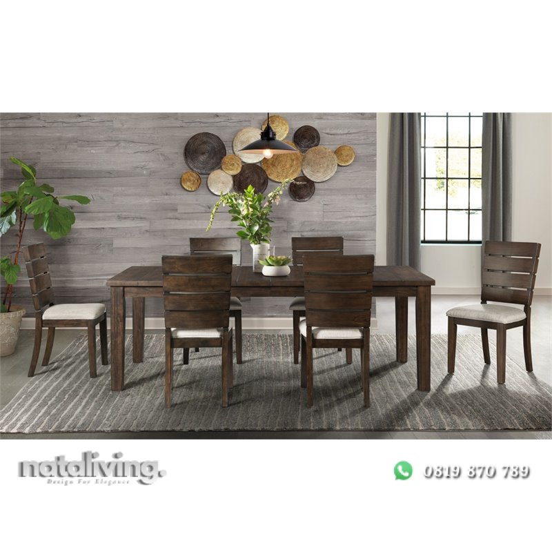 Set meja makan dengan tampilan minimalis vintage terbuat dari kayu jati dengan finishing melamine yang bagus, kursi dilengkapi sofa empuk untuk memberikan kenyamanan Anda saat menyantap hidangan. Paket produk tersedia 1 meja dan 6 kursi.