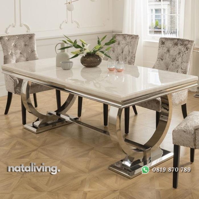 Set meja makan stainless top marmer kursi makan modern elegan nataliving furniture 1
