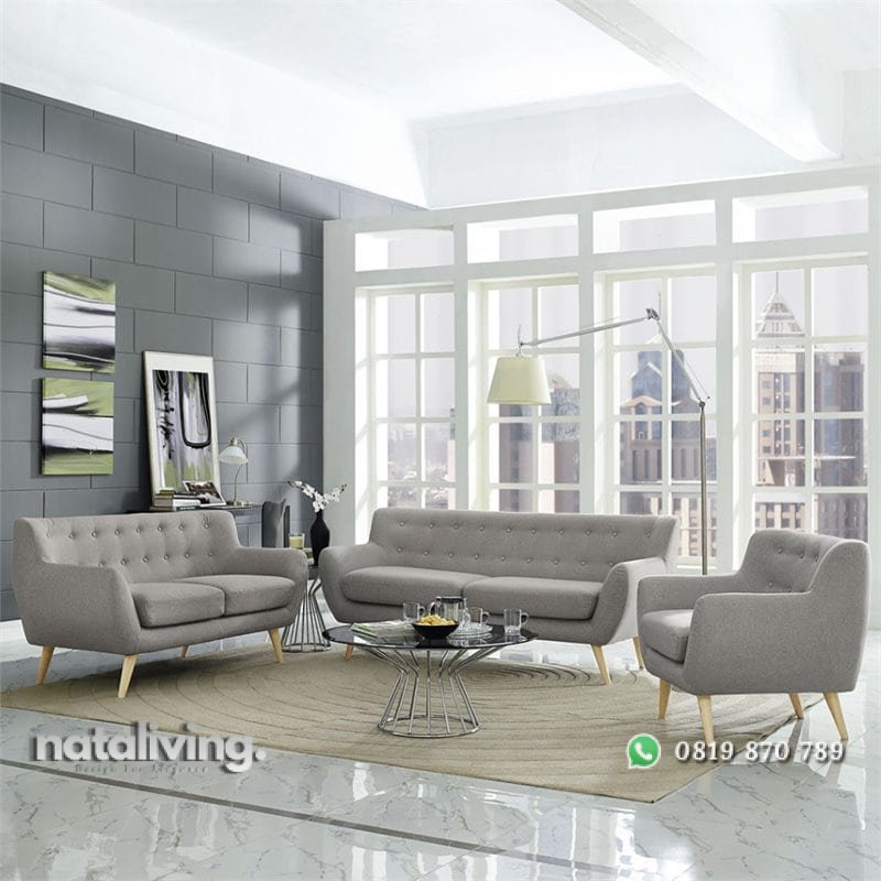 Ini adalah set kursi tamu yang tampil lebih fresh dengan desain retro scandinvian, ada 3 kursi sofa dengan lapisan warna yang cerah dan 1 meja dengan bentuk kontak simpel, dalam mengaplikasikan sentuhan interior masa kini sangat cocok.