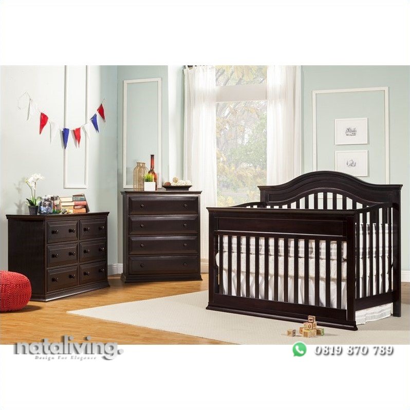 Set tempat tidur bayi terbuat dari kayu jati berumur tua dengan lapisan warna natural yang menampilkan kesan klasik, cocok untuk Anda yang menyukai konsep tradisional maupun klasik.