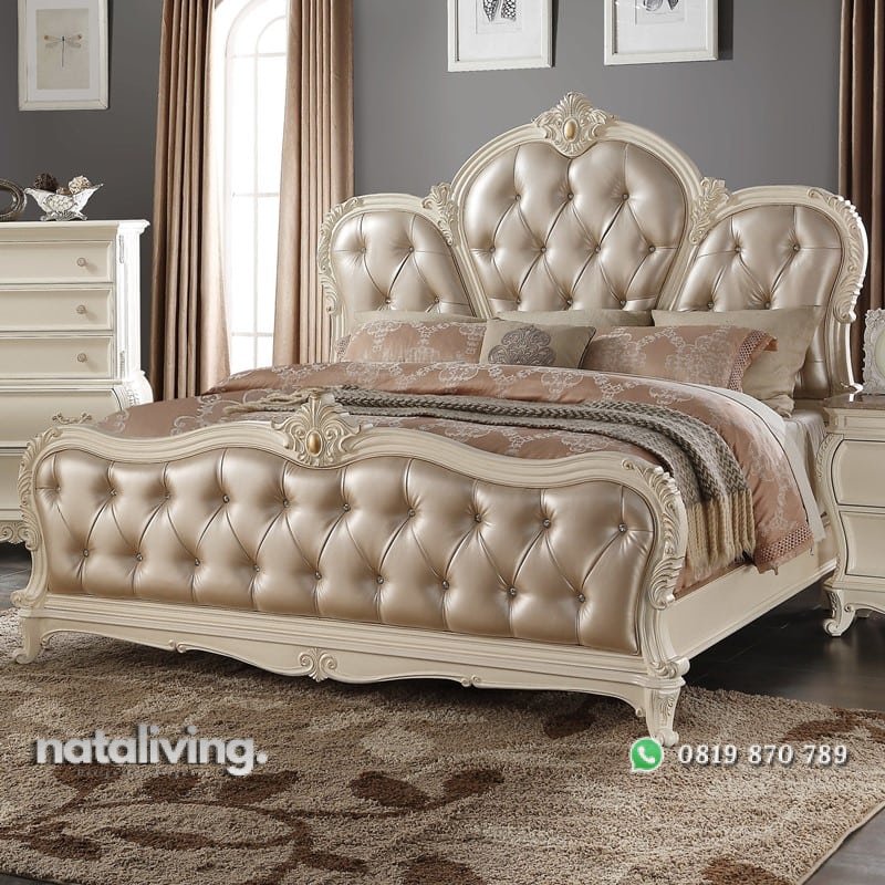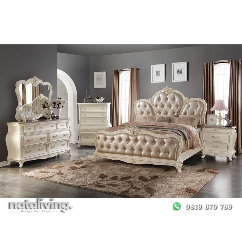 Set meja tidur hadir dengan tampilan berkelas nan mewah, desain mengusung konsep Eropa, memiliki warna khas ditambah dengan sentuhan ukiran yang tampil lebih indah. Tempat tidurnya lebih istimewa, dilengkapi dengan sandaran bersofa yang tampil lebih mempesona.