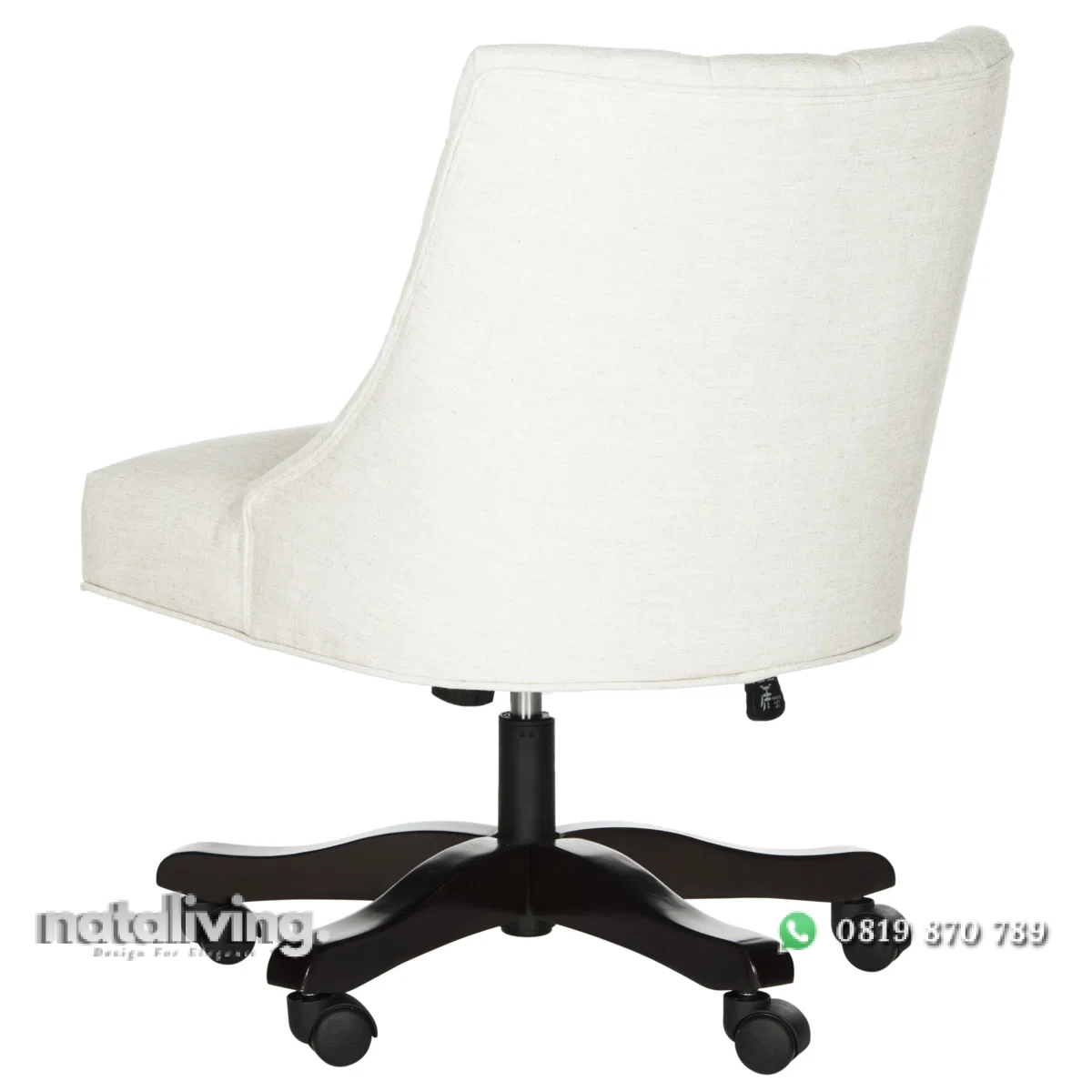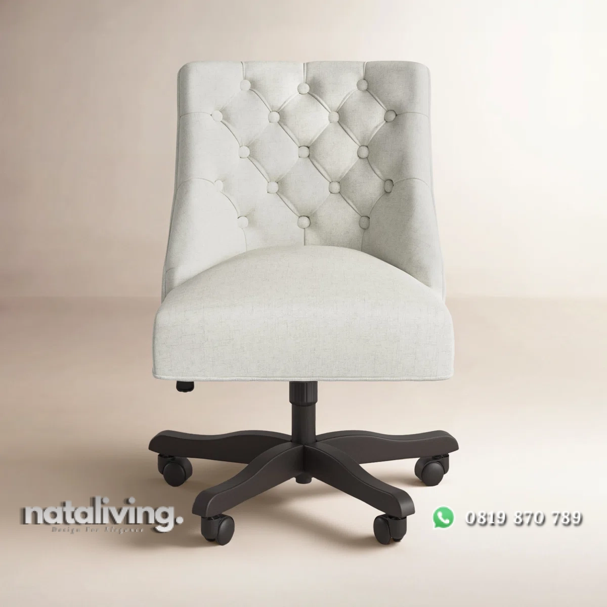 Swivel Kursi Kerja Kantor berbalut sofa yang akan memberikan Anda kenyamanan saat bekerja. Dilengkapi roda kecil pada kakinya bisa membuat Anda leluasa bergerak maupun berpindah tempat, ada juga tuas dibawah yang bisa mengatur ketinggian sesuai postur tubuh Anda.