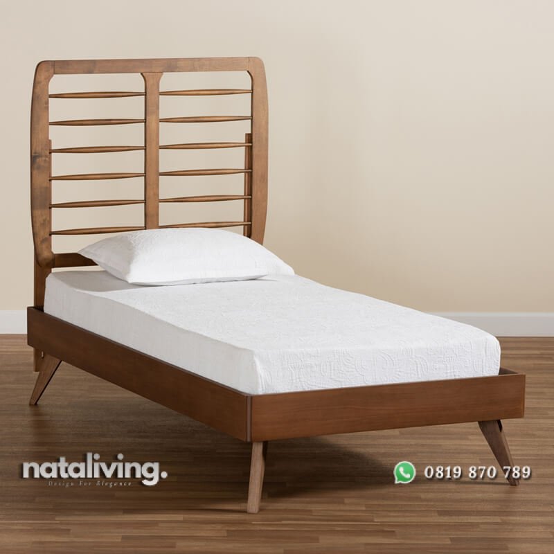 Hadir dengan konsep retro gaya terbaru dengan ciri khas kaki ramping meruncing mampu menjadikan produk satu ini semakin modis dana trendi. Tentunya juga didukung dengan lapisan wood finishing warna walnut brown yang nantinya akan mampu memberikan warna tersendiri pada interior kamar anda anda. Dan untuk bahan bakunya, terbuat dari material kayu jati pilihan dan ditangan langsung oleh pengerajin profesional sehingga terjamin akan kualitas kontruksinya.