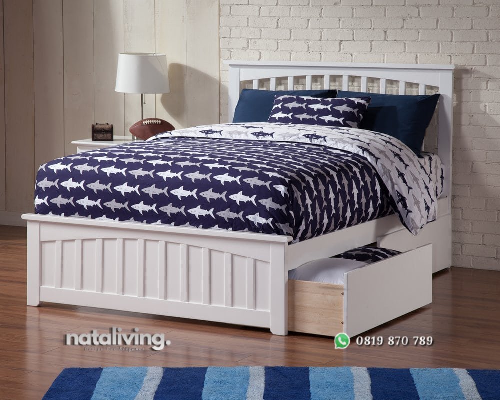 Tempat tidur dengan tambahan laci disamping, dirancang konsep minimalis yang simpel namun tetap terlihat indah. Bahan dari kayu mahoni dengan finishing cat duco yang anti hama.