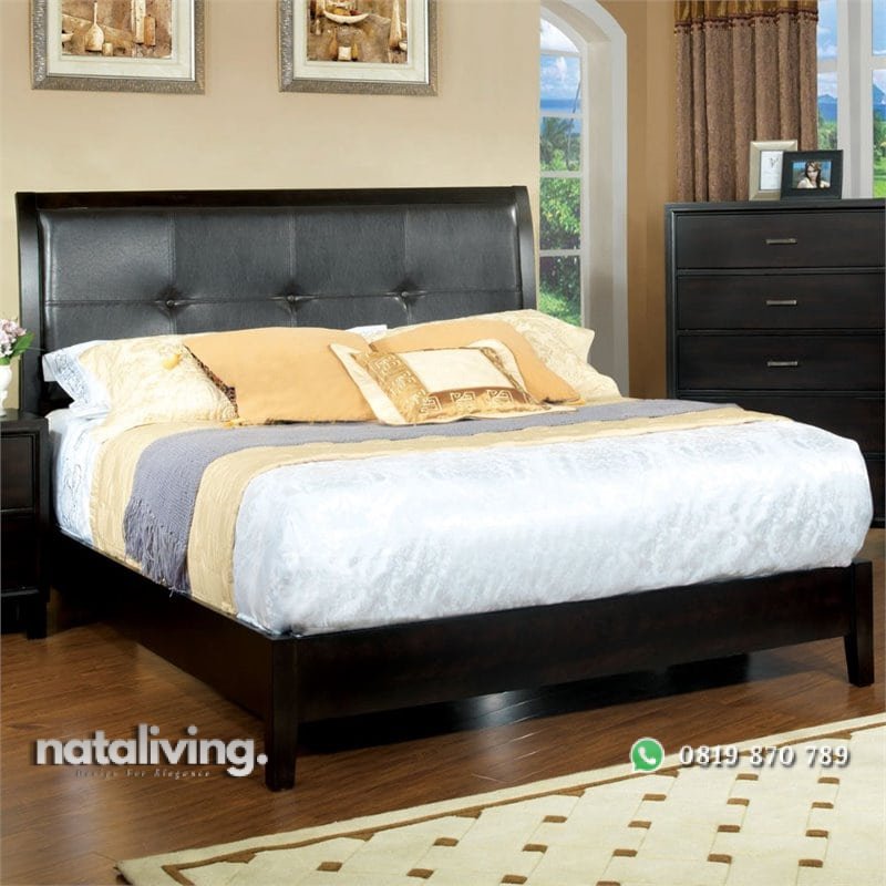 Tempat tidur dengan sandaran yang berlapis sofa akan membuat tidur lebih nyaman dan aman apabila terjadi benturan yang tidak disengaja. Dikonstruksi dengan struktur yang stabil bahan dari kayu jati solid.