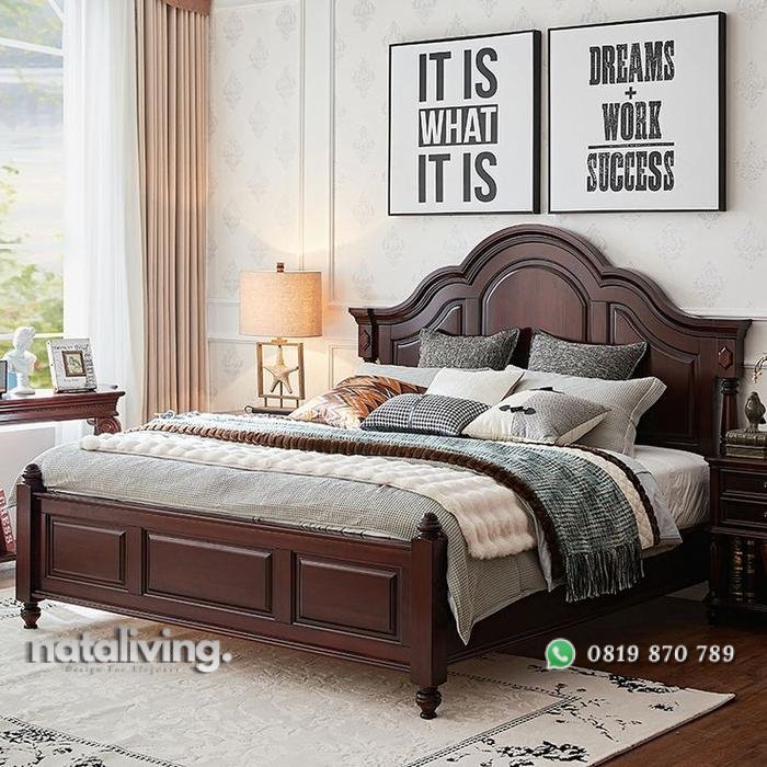 Tempat tidur klasik terbaru mewah dipan kayu jati solid nataliving furniture