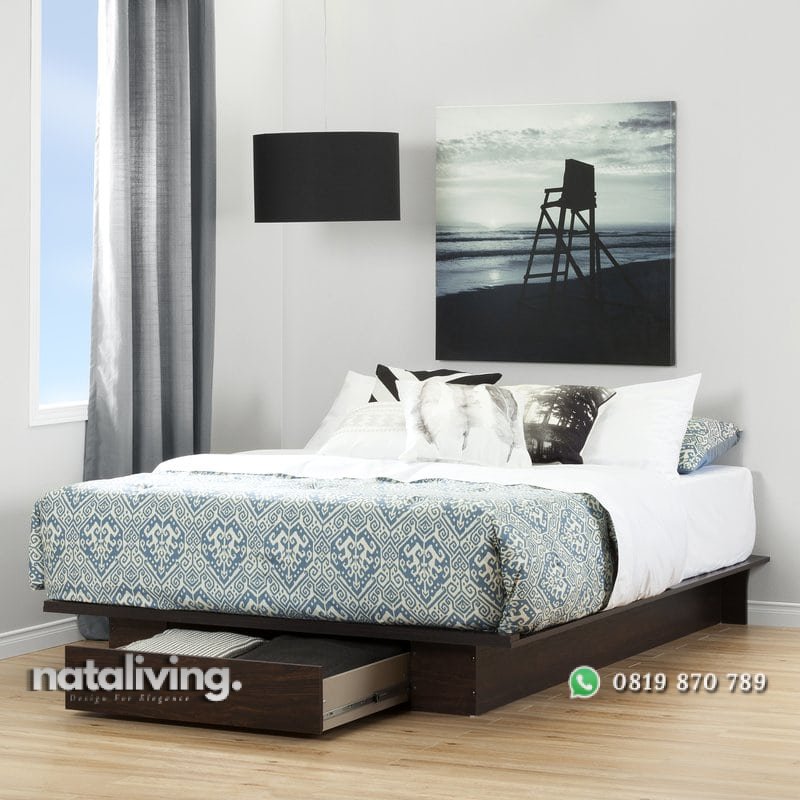 Tempat tidur ini didesain dengan model masa kini model yang simpel dan praktis digunakan, terdapat tambahan laci bisa Anda gunakan untuk menyimpan selimut atau barang lainya.