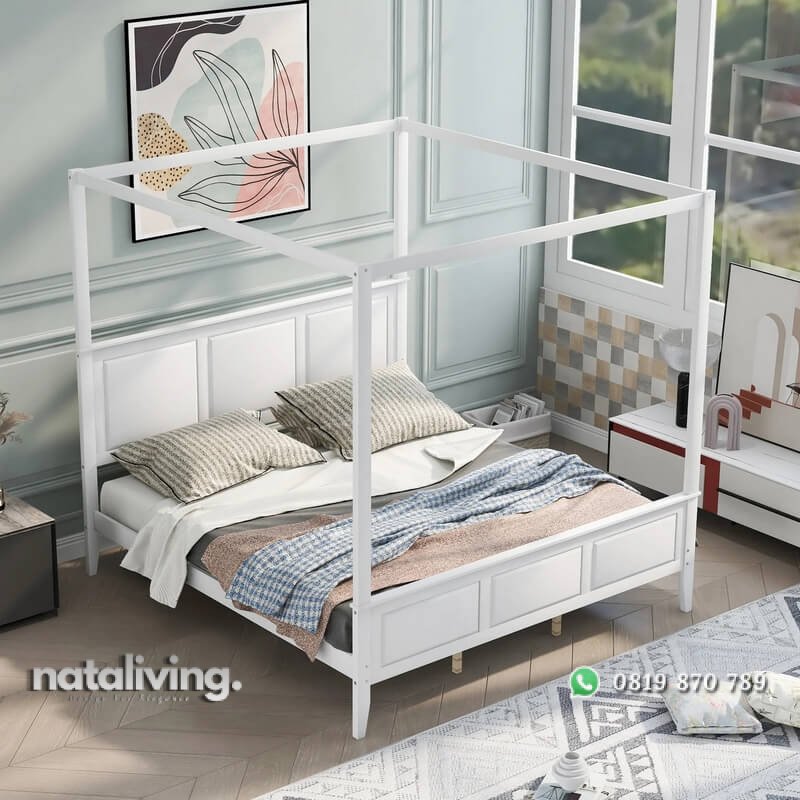 Tempat Tidur Putih Kanopi Model Minimalis Terbaru nataliving furniture 3