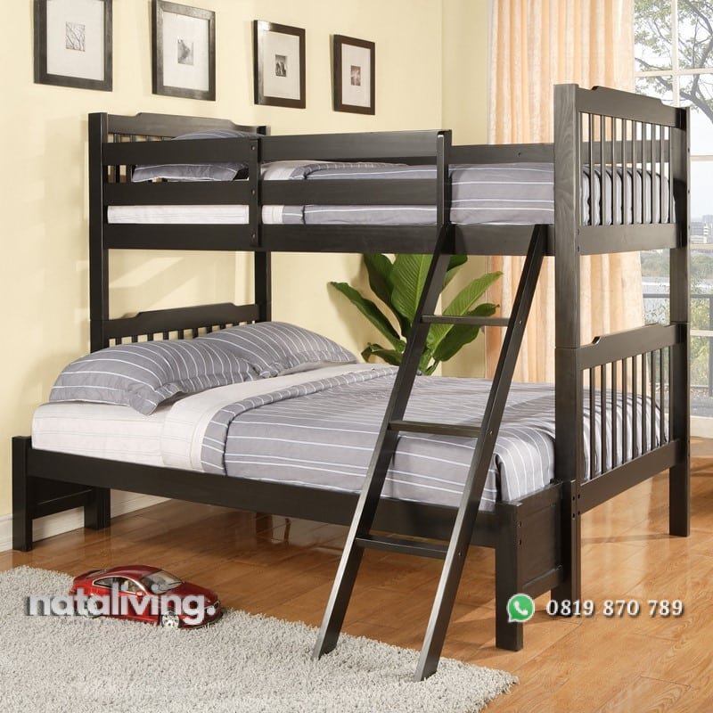 Desain minimalis dan memiliki 2 ukuran kasur yang berbeda, jika anda mempunyai 2 anak yang terpaut umur jauh cocok menggunakan model ini, dan anak anda tetap bisa bermain di kamar bersama sama.