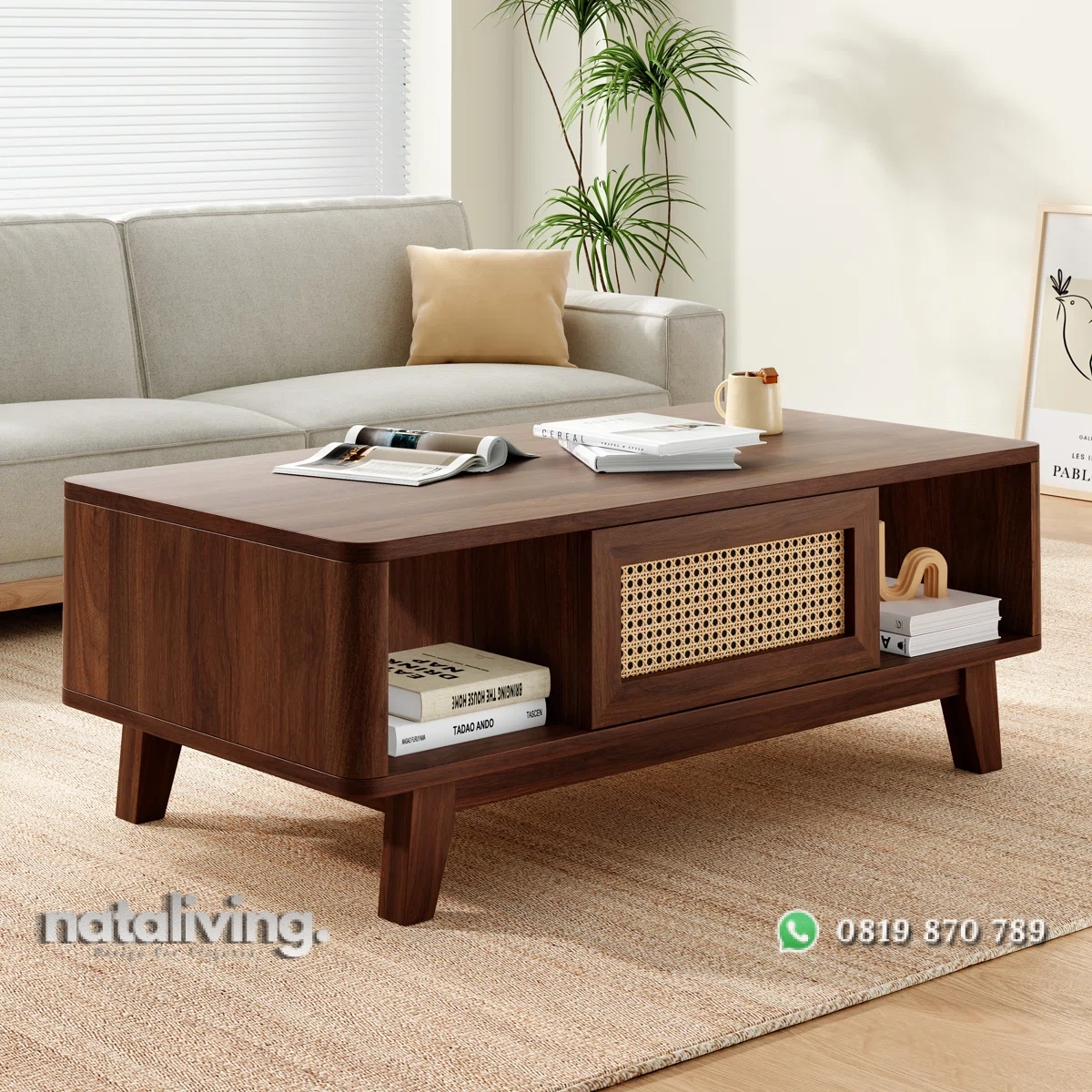 ini akan merubah ruang tamu Anda dengan sentuhan stylish namun praktis. Lihatlah meja tamu ini yang tidak hanya terlihat menawan tetapi juga dilengkapi dengan penyimpanan multifungsi yang praktis, sempurna untuk menyimpan majalah, remote, dan barang-barang penting lainnya. Finishingnya juga memberikan nuansa hangat, memperindah desain modern nya, dan membuat ruang Anda terasa lebih ramah. Meja tamu ini akan menjadi pusat perhatian yang menawan di ruang tamu Anda.