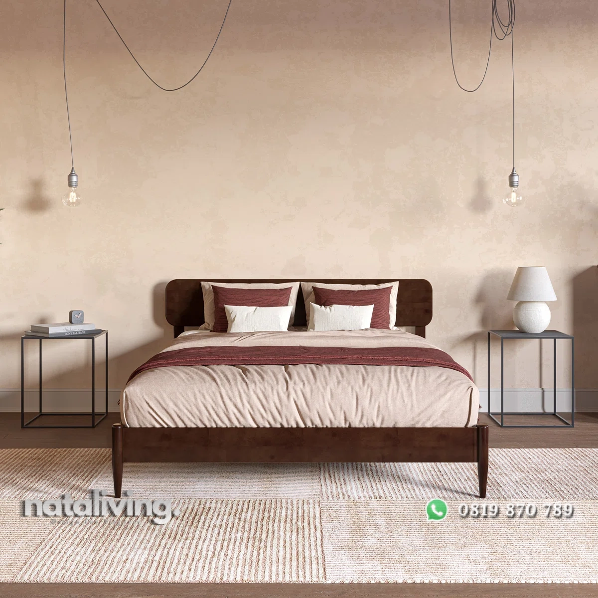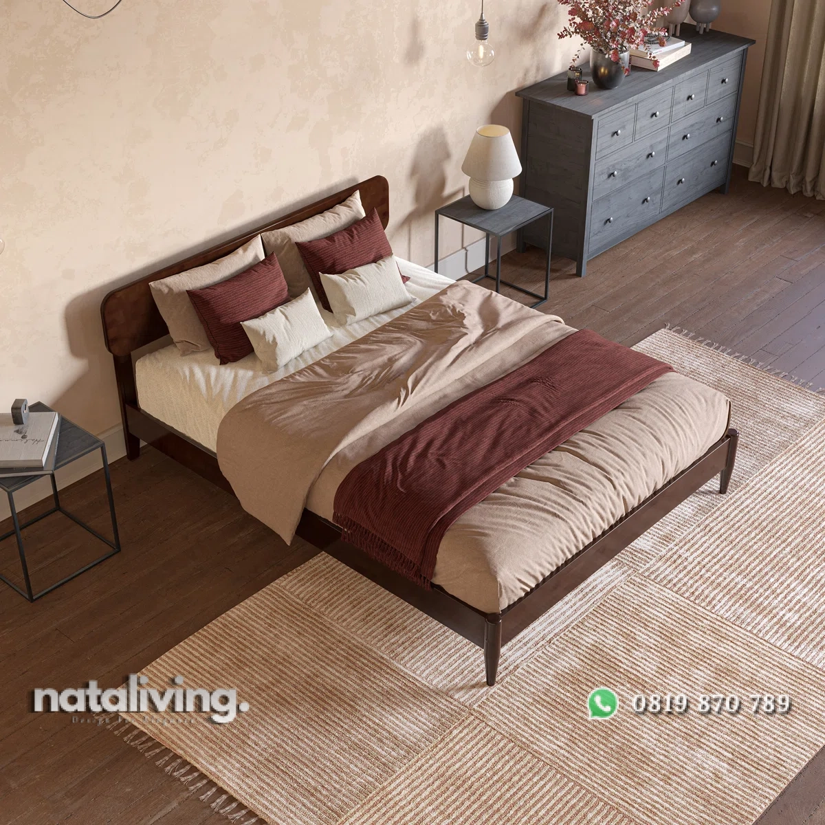 - Tempat Tidur : P 160 cm x L 200 cm x T 95 cm