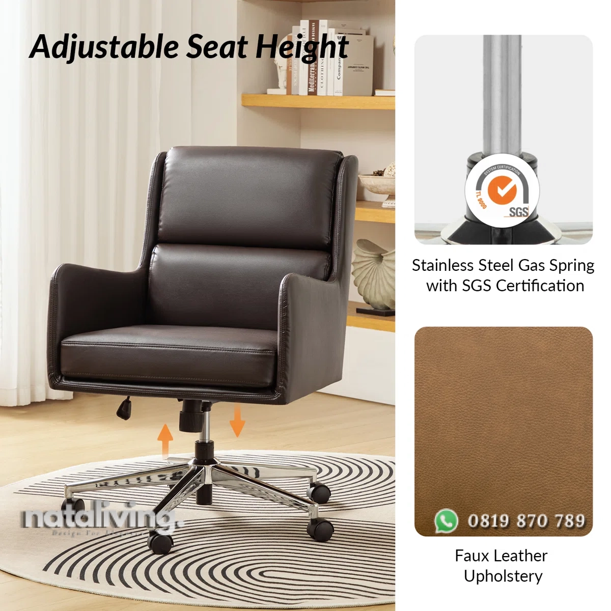 Zaysean Kursi Kerja Kantor berbalut sofa yang akan memberikan Anda kenyamanan saat bekerja. Dilengkapi roda kecil pada kakinya bisa membuat Anda leluasa bergerak maupun berpindah satu tempat, ada juga tuas dibawah yang bisa mengatur ketinggian sesuai postur tubuh Anda dan Kenyamanan Anda.